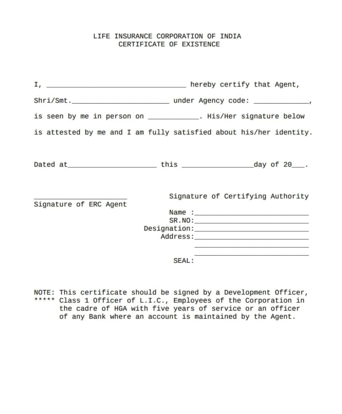 | 31-08-2025 | Life Insurance Corporation of India Certificate of Existence | Click Here |
